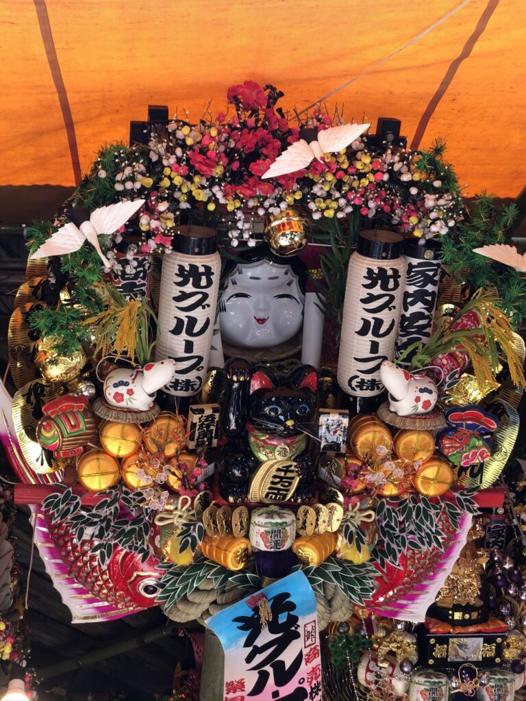 「酉の市」亮點: 🎏 各式各樣的熊手(招財貓)手工藝品,象徵著福運與財運,充滿濃厚的日本風情!