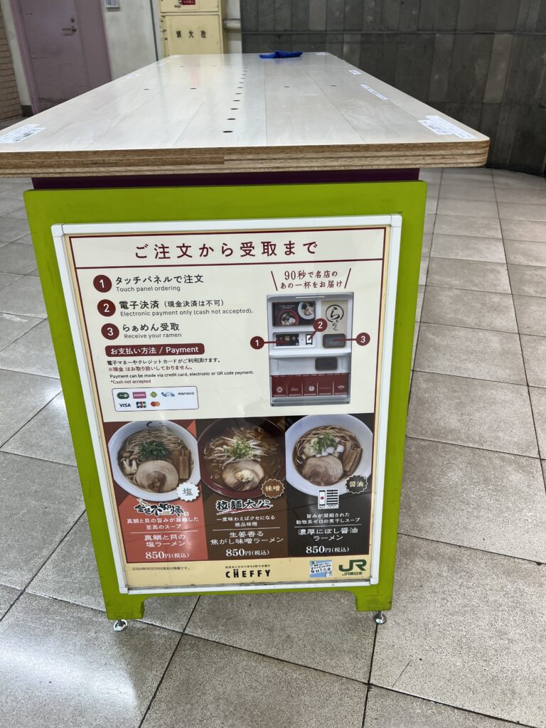 東京旅行時不只想吃好玩好,還想住得舒適方便嗎?位於上野站的「拉麵STAND」絕對是你的必吃推薦!這裡有自助點餐機,只要簡單操作幾步,就能在90秒內拿到熱騰騰的美味拉麵。鹽味、味噌、醬油口味齊全,僅需850日元,絕對是上野周邊的美食新選擇!