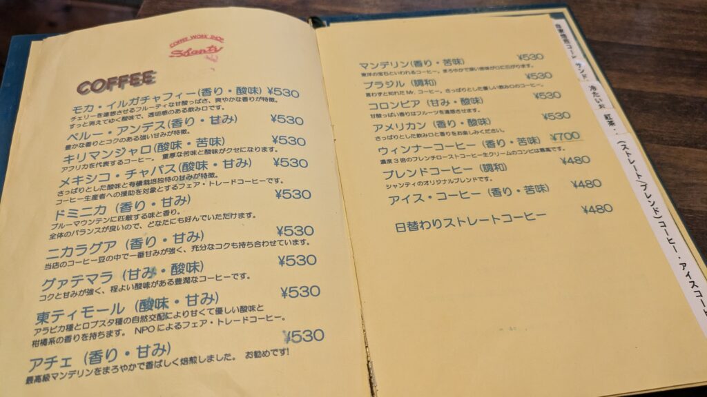 【SHANTY咖啡店的特色菜單】