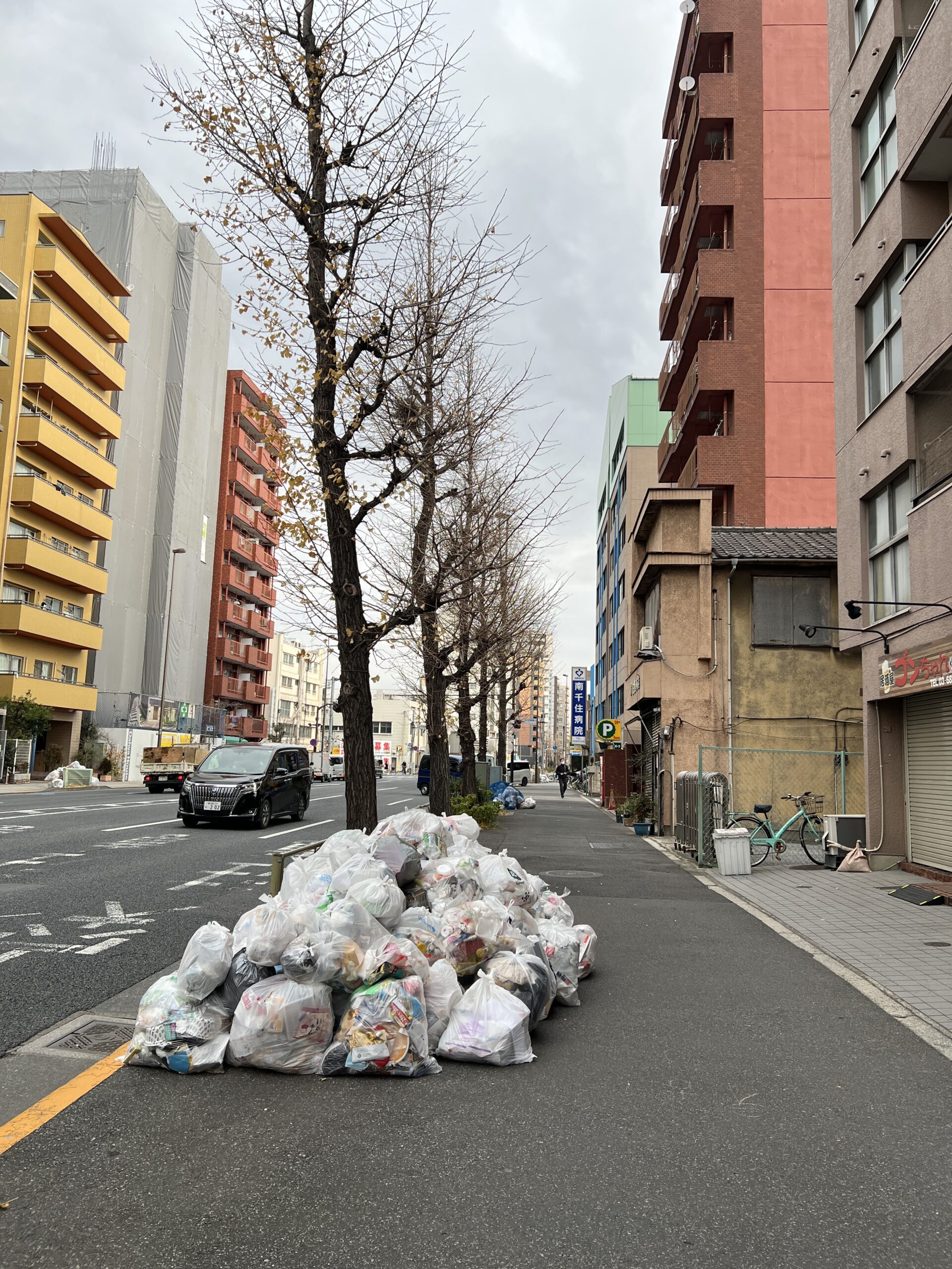 從照片可以看到,即便垃圾量驚人,街道依然保持乾淨整潔,沒有任何異味或混亂的情況。這背後不僅是日本垃圾分類制度的成功,也展現了居民對公共空間的高度重視與自律。
