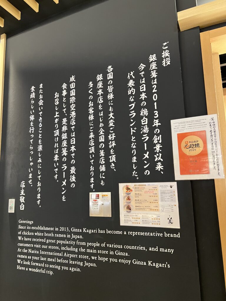 成田機場的 JAPAN FOOD HALL,可以一次享受到各種日式料理,其中 銀座篝拉麵(Ginza Kagari)更是不容錯過的美味!🍜✨