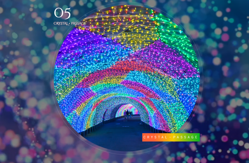 5️⃣ CRYSTAL PASSAGE 🌈 – 走進繽紛燈光隧道,彷彿進入奇幻世界