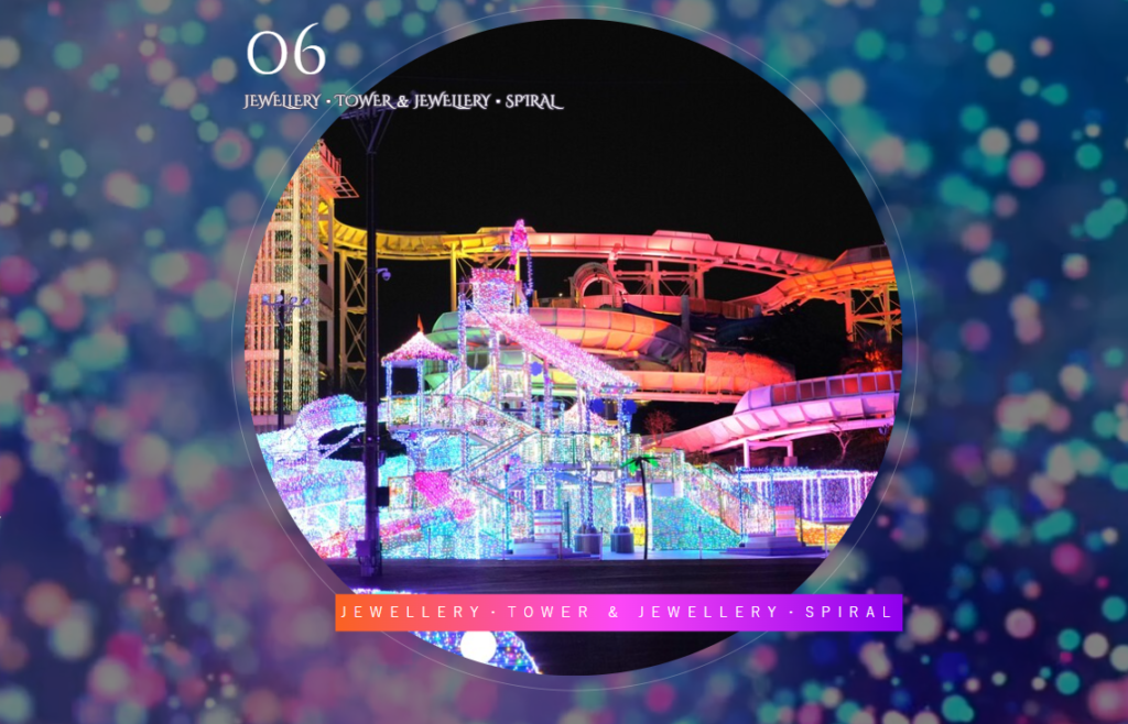 6️⃣ JEWELLERY TOWER & SPIRAL 🏰 – 宛如童話世界的發光建築,壯觀又浪漫