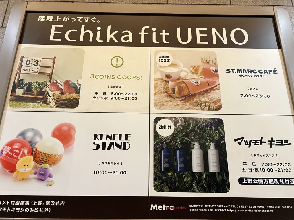📍就在銀座線上野站內的【Echika fit UENO】,是一個超好逛的地下商場,以下是小管家實地探勘成果💡👇