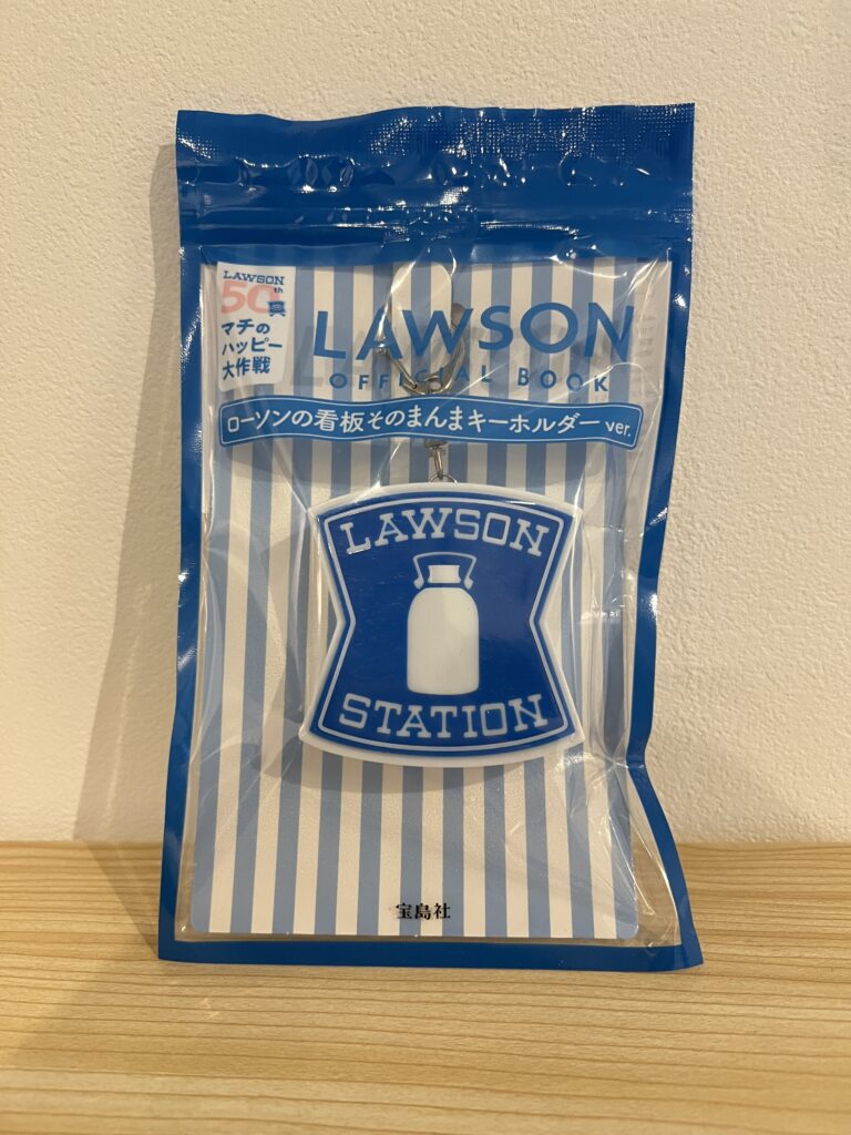 照片中是近期非常受到歡迎的 Lawson官方書附錄「Lawson看板造型發光鑰匙圈」 (ローソンの看板そのままキーホルダーver.)!這個小巧精緻的鑰匙圈,完美還原了Lawson便利商店經典的藍白招牌造型,而且竟然還能發光!