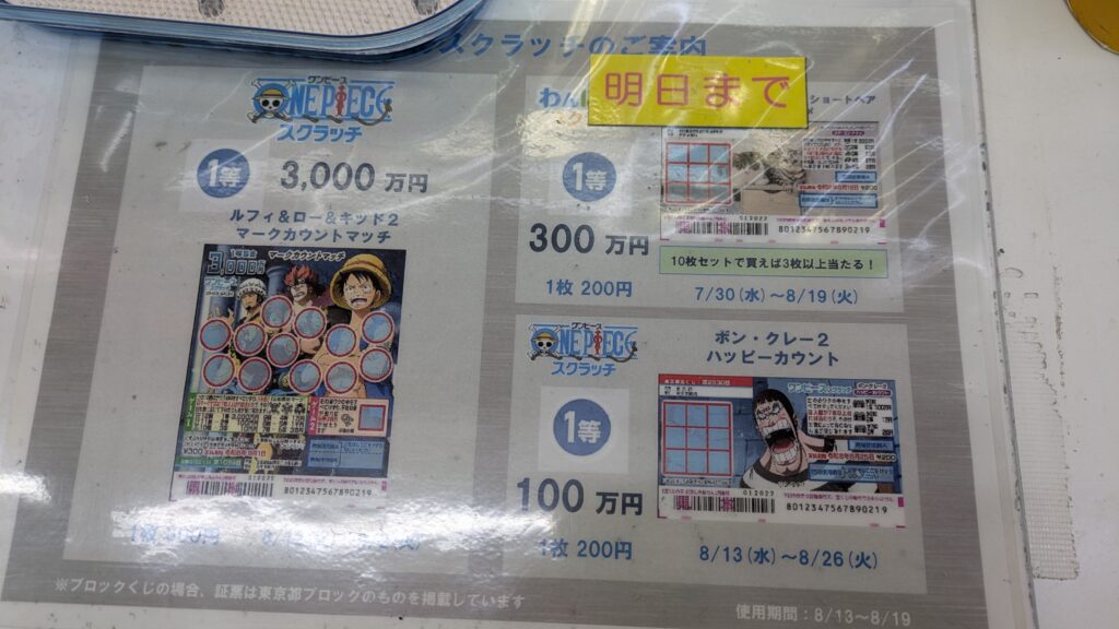 👨👩👧👦 親子旅遊的時候,不妨和孩子一起來這裡小小體驗刮刮樂的樂趣(當然是大人購買啦😉)。雖然未必會中大獎,但刮的過程就像玩遊戲一樣充滿期待感,小朋友看到卡通人物圖案(例如《航海王》版本)也會特別興奮,真的很適合全家人一起體驗那份「開獎前的緊張與歡笑」。