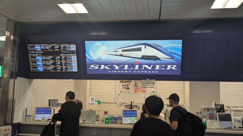 在成田機場購買「Skyliner 特急券」(¥1,300),會有座位與發車時間。
