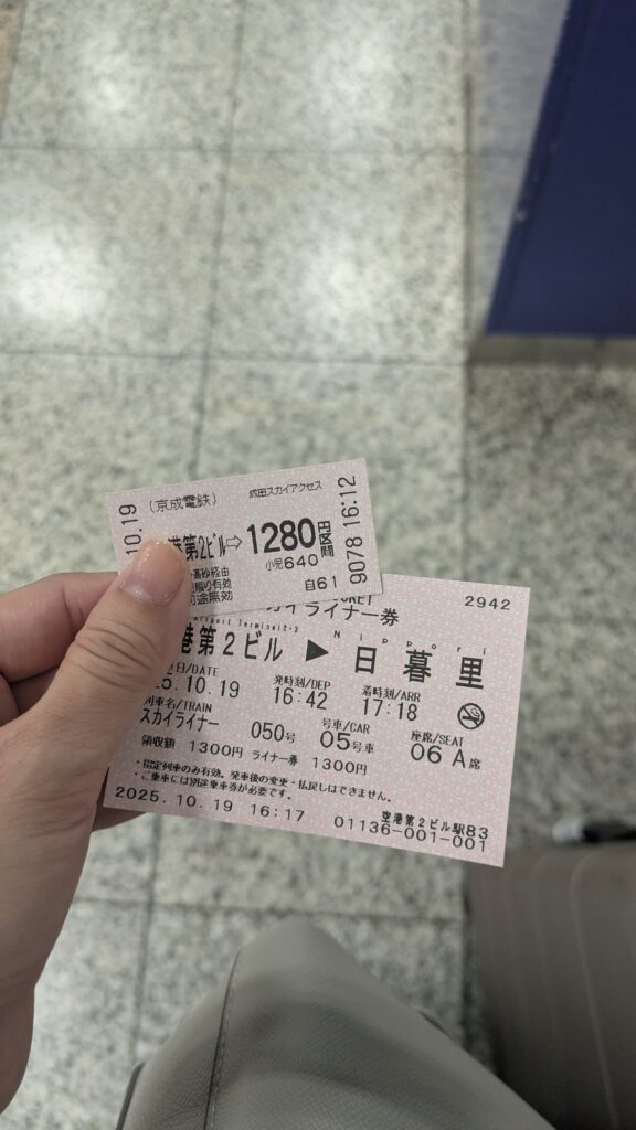 在成田機場買🚉 乘車券 ¥1,280 + 🚄 Skyliner 特急券 ¥1,300
