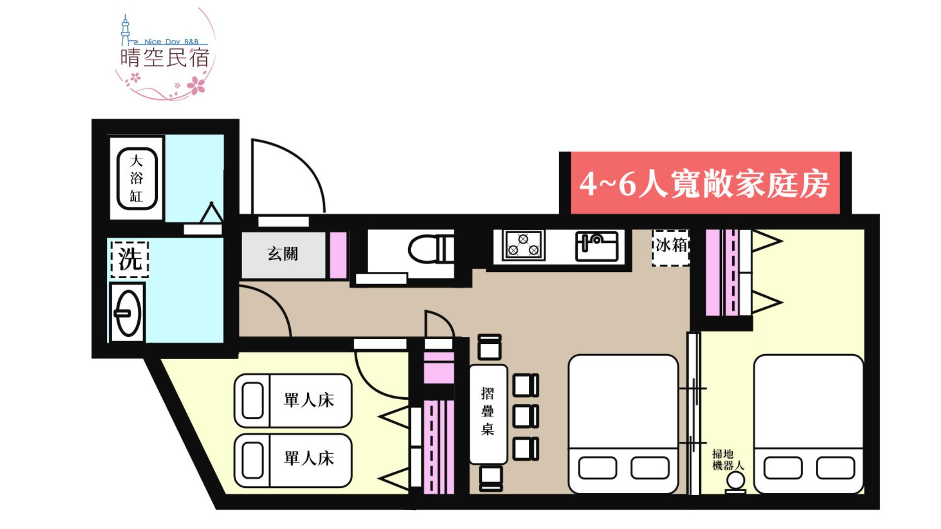 現場影片拍攝!看影片了解4到6人寬敞家庭房,設有洗衣機、廚房不需要與人共用