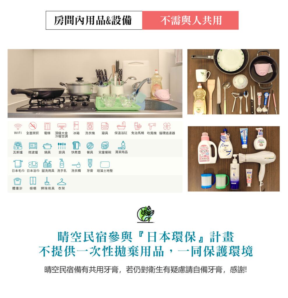 一應具全的廚房用品,在日本臨時想要烹煮都能搞定